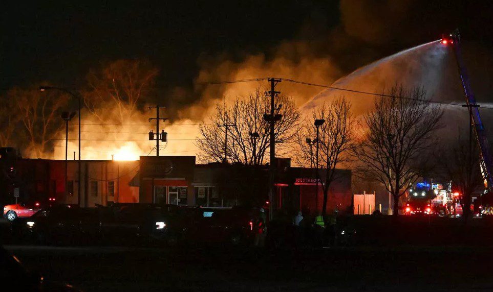 وبحسب مسؤولي الشرطة والإطفاء، أدى حريق مجهول الأسباب إلى سلسلة انفجارات أدت إلى تدمير كلّي لسمتودع قسطو الواقع على الميل 15 في بلدة كلينتون، والذي كان يضم متجراً ومخزناً للسجائر الإلكترونية. وتسبّبت الانفجارات المتتابعة بتطاير الشظايا وكرات اللهب لمسافة ميل كامل تقريباً،، وبارتفاع تجاوز ألف قدم، مما حوّل الموقع ومحيطه إلى ما يشبه ساحة حرب.